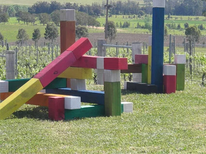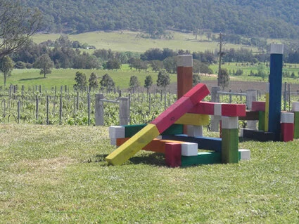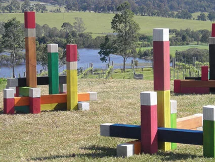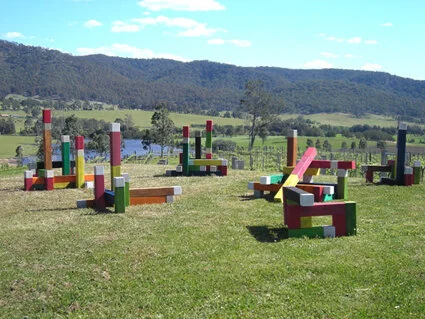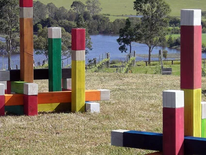 Series of 6 seperate ‘pods’ approx 1 m x 1m x 1m occupying a total area of approx 10m in diameter. Wood, oil paint and silicone.